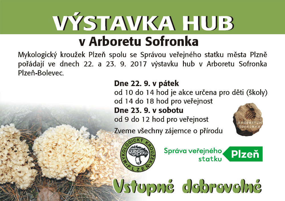 Výstavka hub 2017 Seznam vystavených druhů hub na výstavce ve dnech 22.-23.9.2017 v Arboretu Sofronka. Celkem 133 druhů hub.