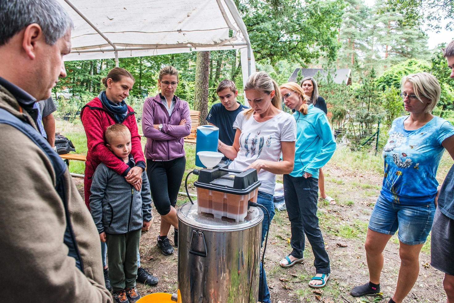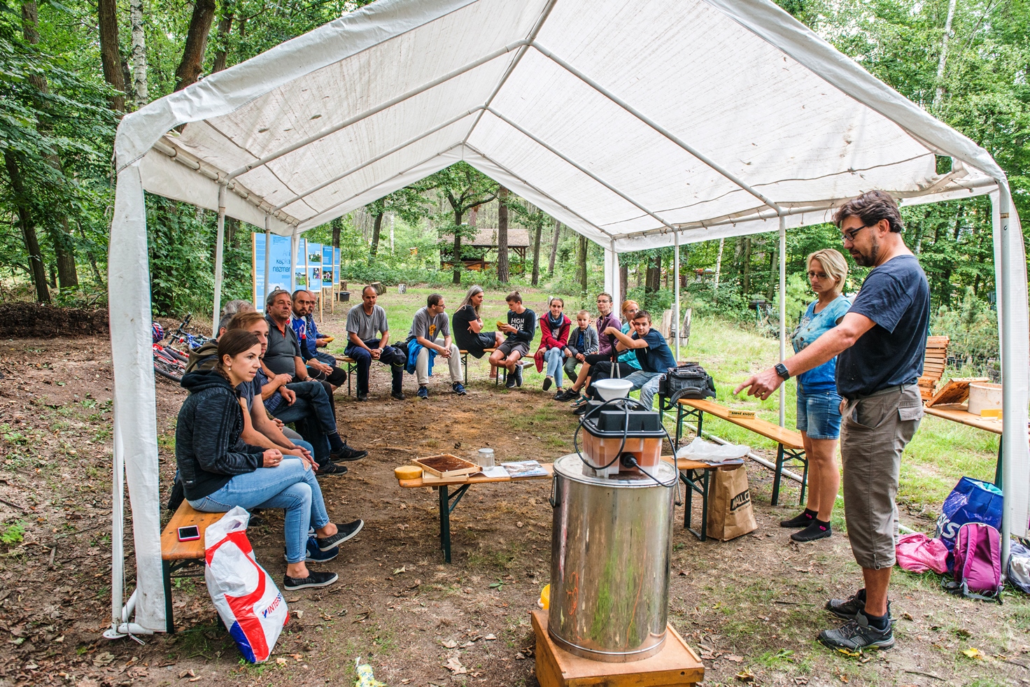Druhá schůzka projektu „Včelaříme pro radost“ byla naplněna aktuálními tématy pro srpen, tedy zakrmováním a ošetřováním včelstev. Řekli jsme si možné způsoby těchto činností a představili si pomůcky a „zlepšováky“, které včelař při těchto úkonech používá. Zkušenější včelaři se podělili se svými metodami a znalostmi, začínající včelaři získávali odpovědi na své otázky. A pak zaznělo opět naše oblíbené „Jdeme do včel“. Sami účastníci si vyndávali plástve z úlů, abychom společně mohli zhodnotit stav včelstev. Opět jsme si popisovali vše, co vidíme a všechna ta krása, vůně a fascinace životem včel přímo čišela z očí účastníků.