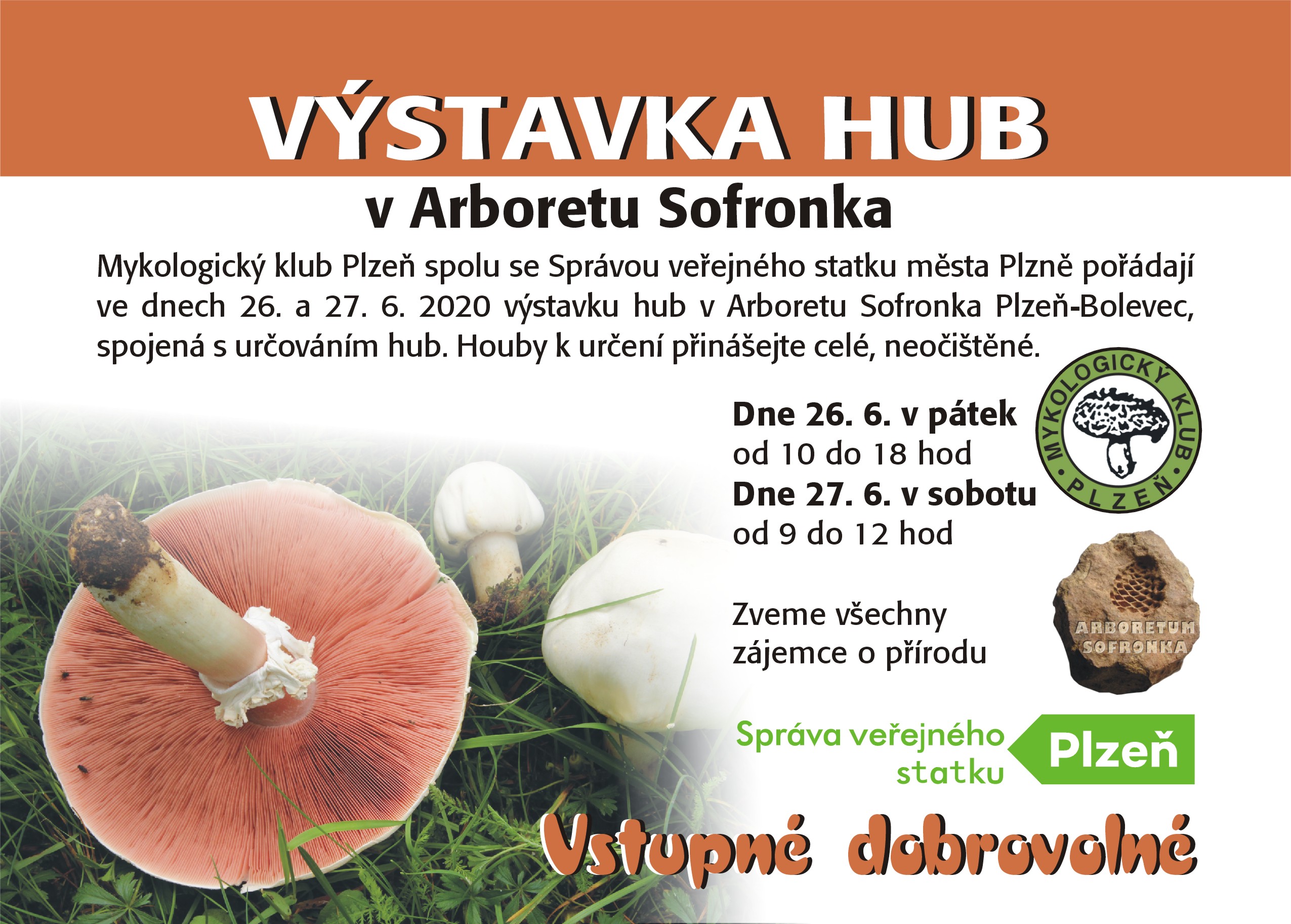 Výstavka hub v Arboretu Sofronka bude otevřená v pátek 26. června od 10:00 do 18:00 hodin a v sobotu od 9:00 do 12:00 hodin.